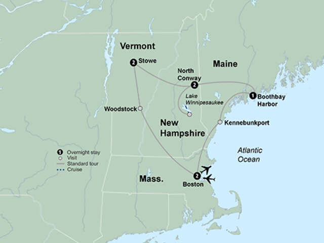 Be charmed by the colors of New England on this 8-day tour that brings you from the heart of historic Boston to the farms, coast and mountains of the north. Tour historic Boston during a two-night stay. Explore Woodstock, Vermont, a quintessential New England village. Tour Ben & Jerry’s Ice Cream Factory and sample some of its delicious creations. Watch apples transform into cider before your eyes at Cold Hollow Cider Mill. Learn about the maple sugaring industry of New England on a farm tour of the Rocks Estate. Relax as your cruise along Lake Winnipesaukee, admiring the splendid views. Dig in at a traditional New England lobster dinner. Admire Maine’s dramatic coast and discover the seaside communities of Boothbay Harbor and Kennebunkport. This is New England.