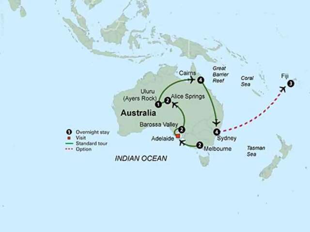 Explore the diverse wonder of the land “down under.” A 3-day adventure in the rugged Outback introduces you to the Aboriginal life and culture of Alice Springs and Uluru, the indigenous name for Ayers Rock. Delve into the colorful world of the Great Barrier Reef. Explore the Barossa valley, a premier winemaking region. Meet Australia’s famous wildlife up-close with a chance to see crocodiles, koalas, kangaroos, and other fascinating animals from the region. You’ll explore the vibrant cosmopolitan city of Melbourne and relax with 4-night stays in Sydney and Cairns, the gateway to the Great Barrier Reef! You’ll take a ride through the rainforest canopy in tropical Queensland and have a guided tour of the world famous Sydney Opera House.
