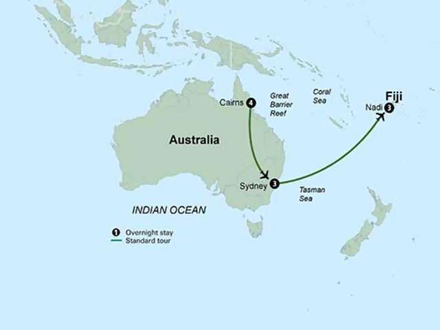 Set out on an adventure that brings together the epic highlights of Australia with the tropical paradise that is Fiji. Explore the Great Barrier Reef. Visit Hartley’s Croc Farm and see crocodiles in their natural habitat. Delve into another way of life at the Tjapukai Aboriginal Cultural Centre. Come to know the exciting city of Sydney during your included city tour, harbour dinner cruise and fascinating guided tour Sydney Opera House. You will also have a full day to explore the city on your own. Discover Nadi’s scenic hinterland and visit the Garden of the Sleeping Giant begun by famedHollywood actor Raymond Burr. On this trip you even have the chance to meet a few of the local koalas. Finally, complete your trip with three nights in beautiful Fiji.