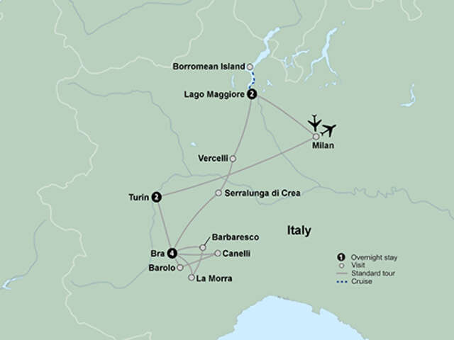 Immerse yourself in the local food, world-renowned wine and breathtaking sights of the Piedmont region of Italy. Venture by boat to the stunning Borromean Islands pausing at the enchanting town of Pallanza to explore its colorful streets. Travel to the Vercelli, making a stop at a traditional rice producer. Spend time exploring the Langhe-Roero & Monferrato area, strewn with vineyards and famous for its winemaking. Meet a local “wine teller” who introduces you to the area’s renowned wines. A truffle hunter and their dog demonstrate gathering techniques. In Canelli, explore an elaborate wine cellar known as an “underground cathedral.” Spend time at a hazelnut farm and take a guided tour of the grove. Discover the regal city of Turin with a local guide. Your true taste of Northern Italy awaits!