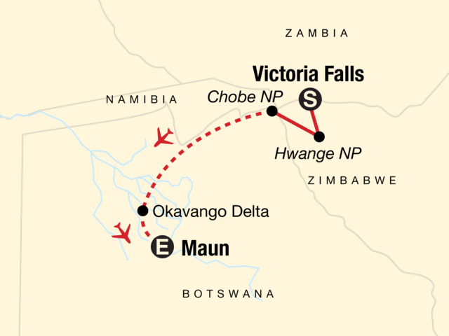 Your Journeys Highlight Moment: Botswana Storytelling and Traditional Dinner, Maun. Arrival transfer. Open-vehicle wildlife safari drives in Hwange and Chobe National Parks. Chobe boat safari. Wildlife excursions by boat and foot in the Okavango Delta. All transport between destinations and to/from included activities.