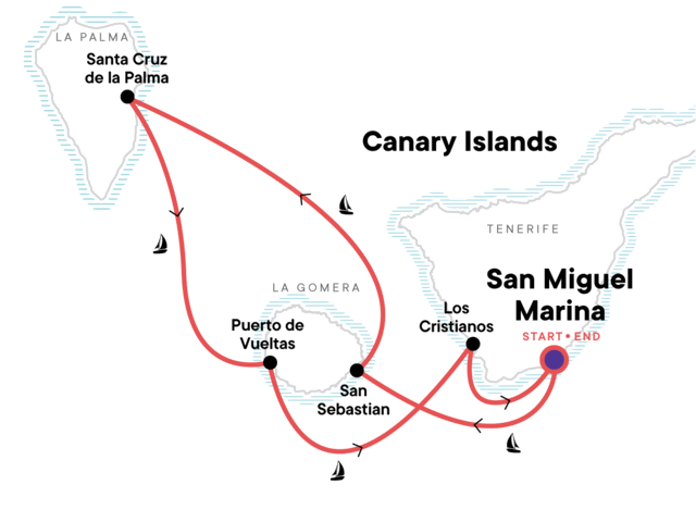 In regard to booking onward travel for the last day of your Sailing the Canary Islands trip, a flight time of 1pm or later is ideal as this will add further flexibility to your itinerary.