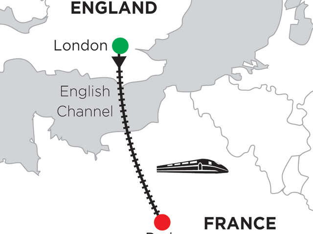 Travel by high-speed Eurostar train (Standard class) London-Paris with porterage; transfers to/from train stations
