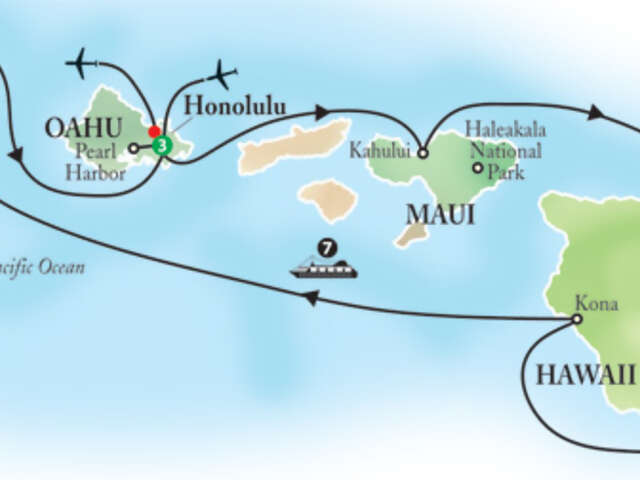 HONOLULUTraditional lei greeting; guided sightseeing; visit Pearl Harbor and USS Arizona Memorial & Museum; local host service; partial oceanview room7-NIGHT CRUISECruise Cruise independently aboard Norwegian Cruise Line’s Pride of America