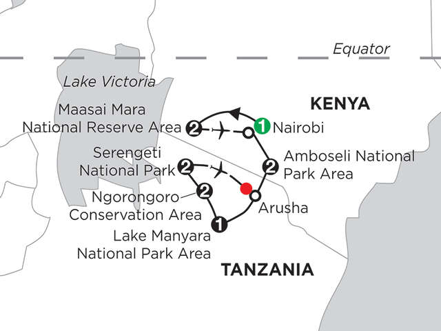 Between destinations and for all game drives: private safari mini-bus in Kenya & 4-wheel-drive vehicle in Tanzania carry up to 6 people, and feature a pop-up roof for easy game viewing/photography; private transfers to/from airport for all intra-vacation flights; intra-vacation flights not included.