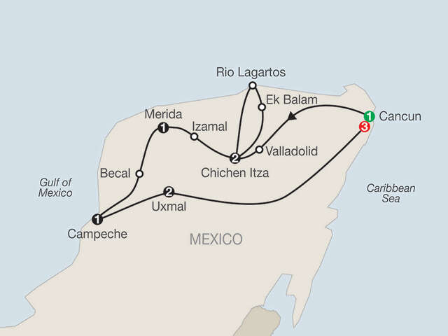 Home to one of the world’s most sophisticated ancient cultures, Mexico’s Yucatán offers fascinating archaeological sites, interesting colonial cities, and beautiful beaches. On this Yucatán tour, you’ll explore it all with overnights in Cancun, Chichen Itza, Mérida, Campeche, and Uxmal. In ancient times, the Maya built complex cities, developed an accurate calendar, aligned their buildings for astronomical purposes, and learned to effectively farm. On this Yucatán tour, learn about this intriguing culture and visit some of its greatest ruins. Stay at the renowned Hotel Mayaland steps away from Chichen Itza and explore this UNESCO World Heritage Site built by the Maya between 600 and 900 AD. Here, visit the Ball Court, site of sacrifices; El Castillo, a pyramid dedicated to the high priest; and Cenote Sagrado, a sacred underwater sinkhole used for sacrifices to the gods. You’ll also explore Ek’ Balam, at the height of its importance from 600-900 AD, and Uxmal, one of the Maya’s ancient masterpieces and today a UNESCO World Heritage Site. On this tour through Mexico’s Yucatán, you’ll also explore the colonial cities of Valladolid, with its charming streets and interesting churches; Mérida, where you’ll stay in a former colonial mansion; and the coastal town of Campeche, a UNESCO World Heritage Site with baroque Spanish architecture. Cruise through the mangroves at Rio Lagartos, a Biosphere Reserve where you’ll see pink flamingos, and enjoy some out-of-the-ordinary experiences offered by Globus, including a visit to a Panama hat maker in Bécal and a cooking demonstration in Uxmal. With three extra nights in Cancun, you’ll have time to soak on the beach, visit the ruins in Tulum, or just relax by the pool. From the fun experiences to the fascinating sites, this Yucatán tour—with extra time in Cancun—is a perfect vacation!