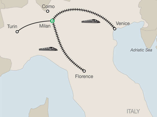 On this Splendors of Italy tour, you'll spend six nights in Milan with leisure time to explore the city and excursions to Venice, Turin, and Florence. In each of these cities, you'll have a guided tour of the must-see attractions. In Milan, your sightseeing includes a visit to the magnificent Sforzesco Castle grounds and museum; the glass-domed Galleria, with its designer shops and famous cafés; and more. Among the many sights in Venice, visit St. Mark's Basilica; Doges’ Palace, with its gothic architecture; and the Bridge of Sighs, built in the 17th century. Leisure time in the city gives you the opportunity to take an optional gondola ride or perhaps to sit in St. Mark's Square for prime people watching.